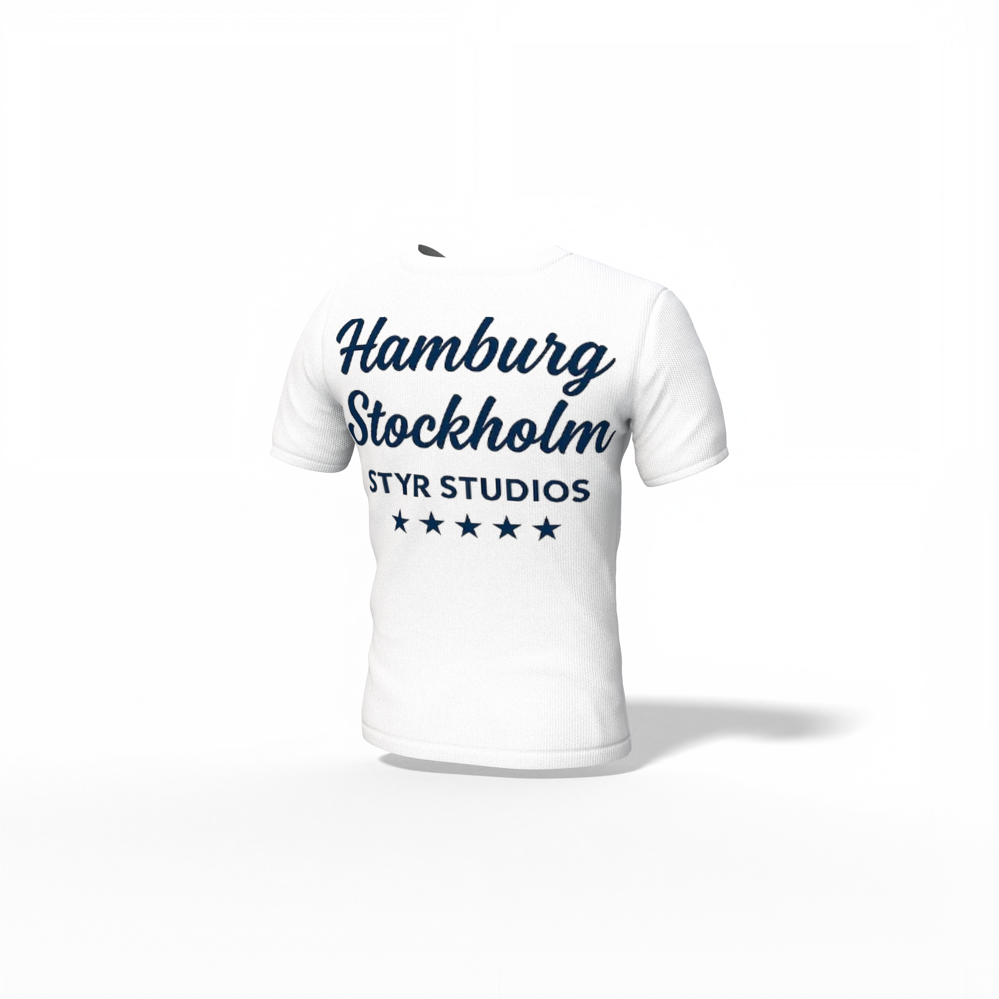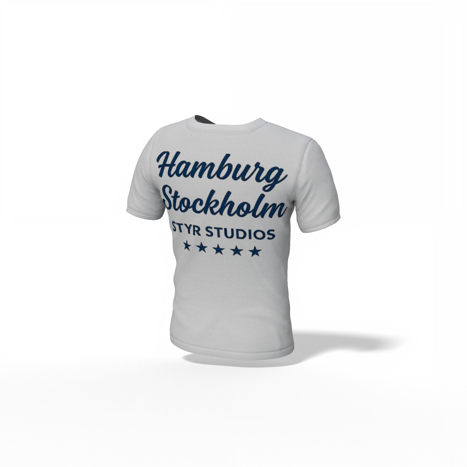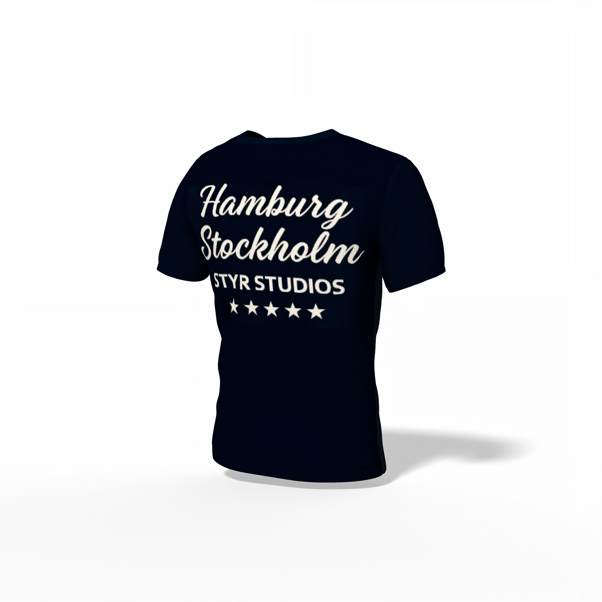 Auf der Rückseite rundet der dezente Print „Hamburg to Stockholm“ den Look ab und verleiht dem Shirt eine subtile, nordische Note.