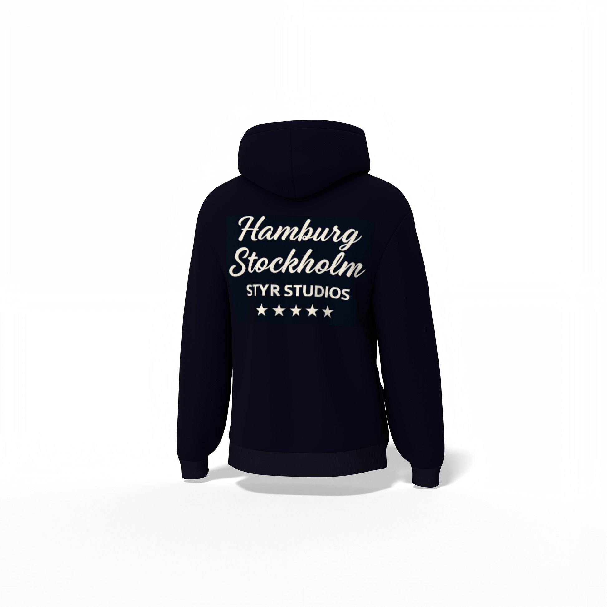 • Dezenter Rückenprint „Hamburg to Stockholm“