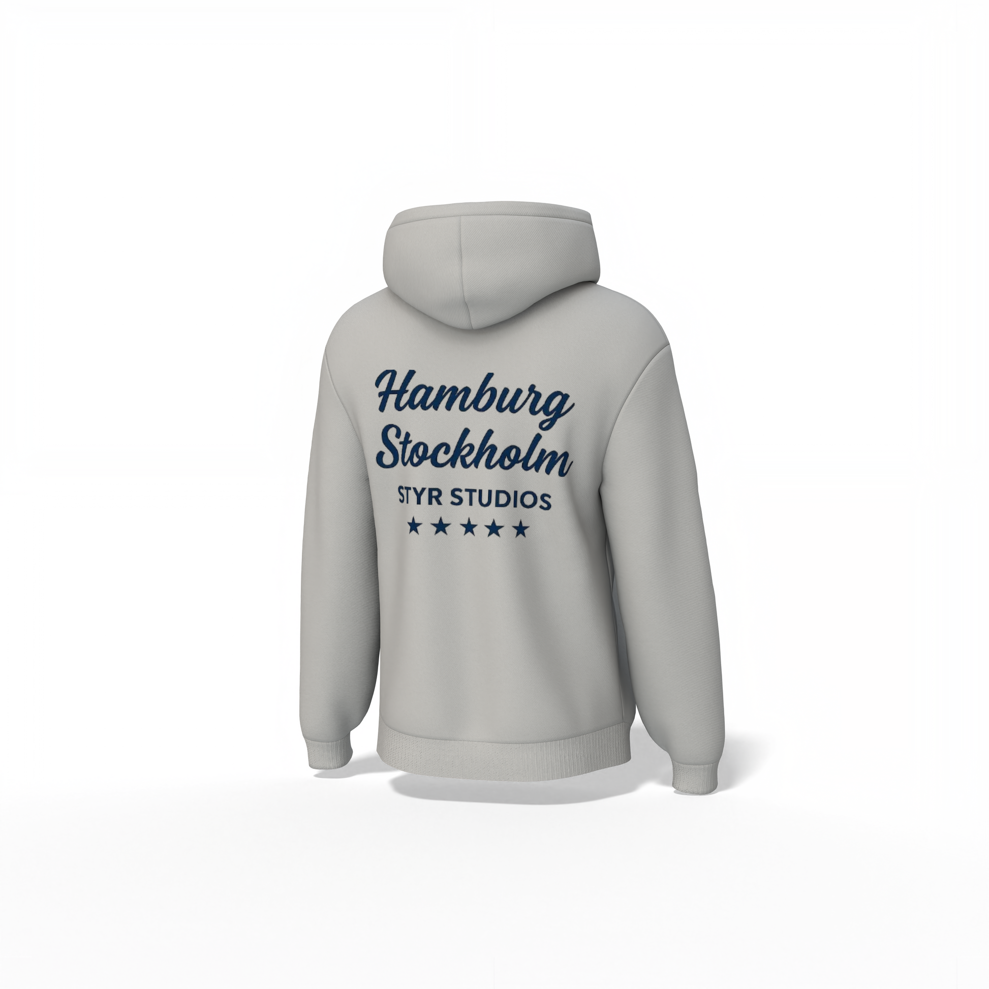 Auf der Rückseite sorgt der dezente Print „Hamburg to Stockholm“ für einen coolen, nordischen Touch.